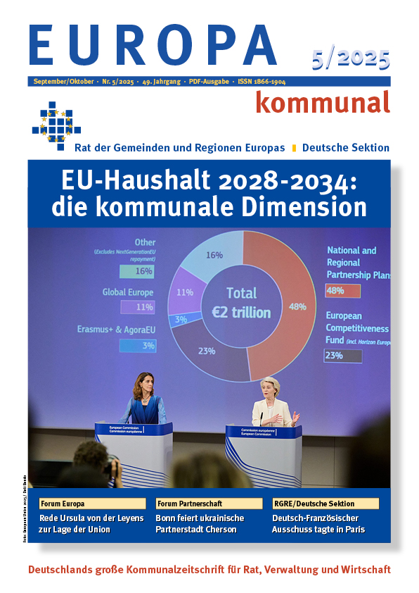 Nachstehend finden Sie das Inhaltsverzeichnis der aktuellen Ausgabe sowie als Leseprobe den Leitartikel zum Schwerpunktthema. Im ARCHIV finden Sie die Schwerpunkte und Leitartikel aller Ausgaben von „EUROPA kommunal“ ab Heft 1/2009.